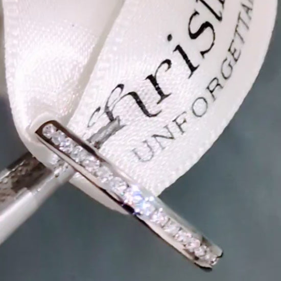 Both options are expertly set and chosen for brightness and consistency, ensuring a beautifully balanced line of sparkle.