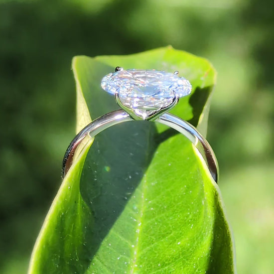 This ring takes a classic oval diamond and reimagines it with a contemporary twist. Set east–west across the finger, the 3 carat lab-grown diamond becomes a line of light, sleek and modern yet timelessly elegant.