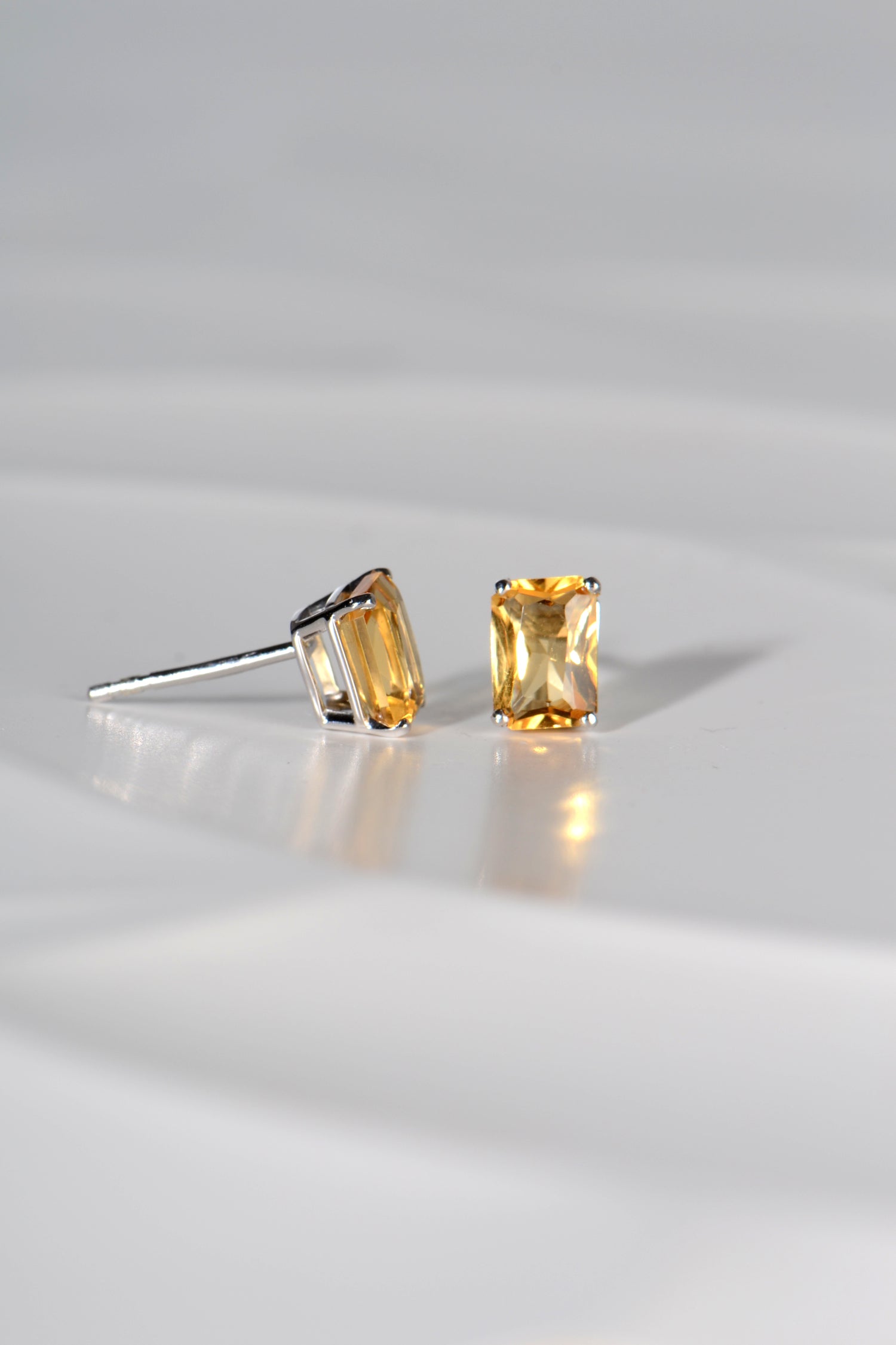 The citrines measure 7mm by 5mm. A radiant cut gemstone has more facets than a step cut which gives the stone more life.